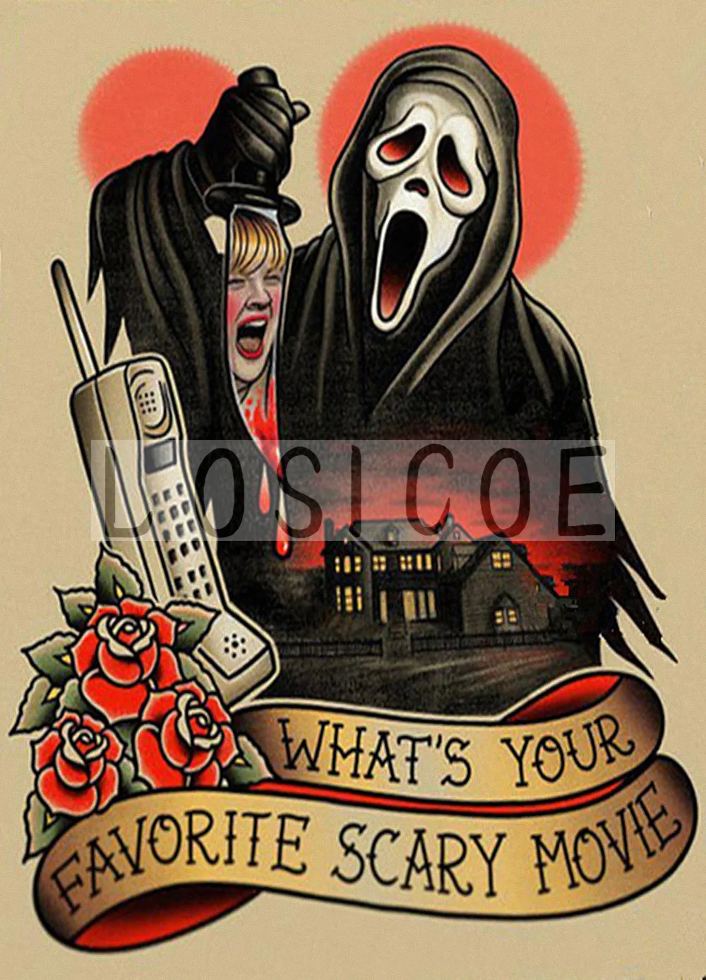 What S Your Favorite Scary Movie Tattoos Pattern Retro Kraft Poster Wall Sticker Hanging Painting Barber Shop Home Decor Painting Calligraphy Aliexpress
